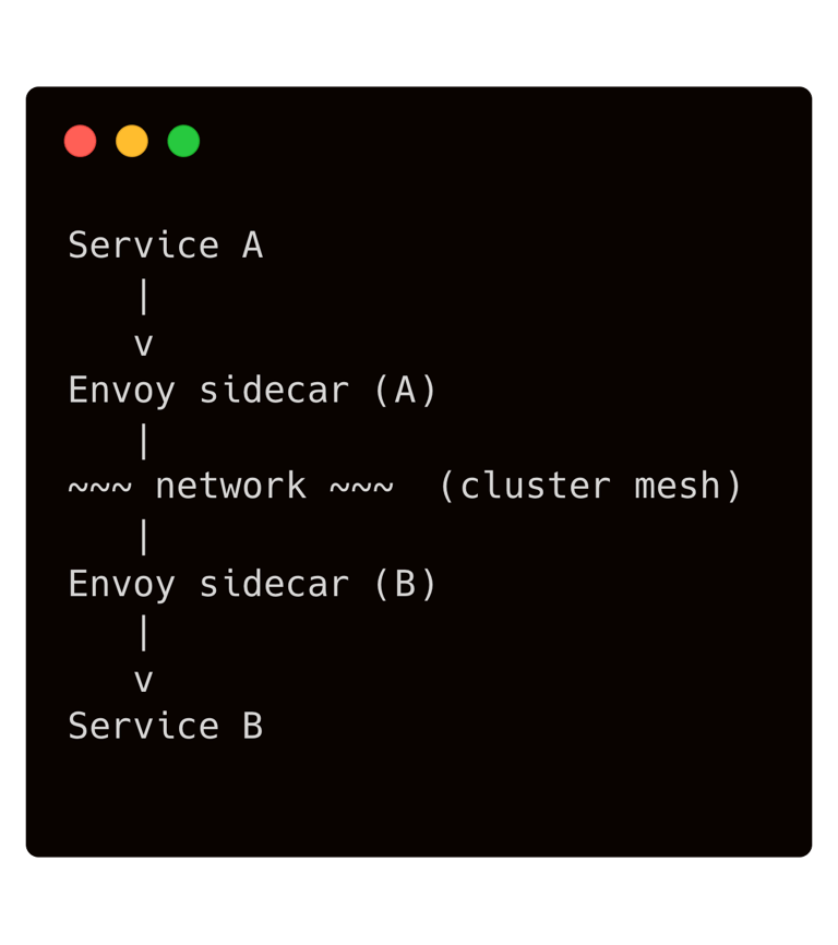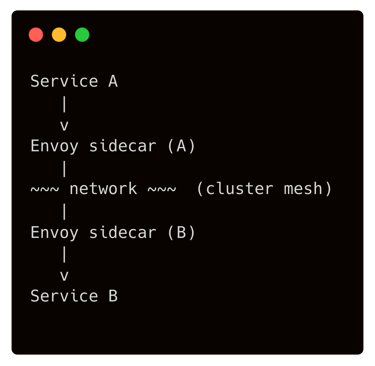Nell'illustrazione: Service A invia una richiesta che viene automaticamente catturata dal sidecar Envoy locale, il quale la critta e inoltra attraverso la rete (mTLS) verso il sidecar del Service B. Il sidecar di B decifra e verifica la richiesta, applica eventuali policy (es. controllo accessi) e infine la consegna al Service B. Tutto questo avviene in modo trasparente per i servizi A e B (che credono di comunicare direttamente tra loro sull’host e porta usuali).