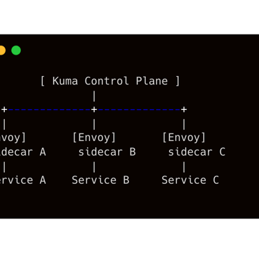 kuma-sidecar: il container vero e proprio del data plane proxy, contenente il processo kuma-dp che avvia Envoy. Questo sidecar si avvia dopo il successo di kuma-init (che termina una volta impostate le regole di routing). Il binario kuma-dp esegue Envoy e lo registra presso il Control Plane, instaurando un collegamento persistente. Da quel momento, Envoy (sidecar) riceverà dal CP la configurazione attuale della mesh (liste di servizi e loro indirizzi, certificati mTLS, policy di traffico, ecc.).
